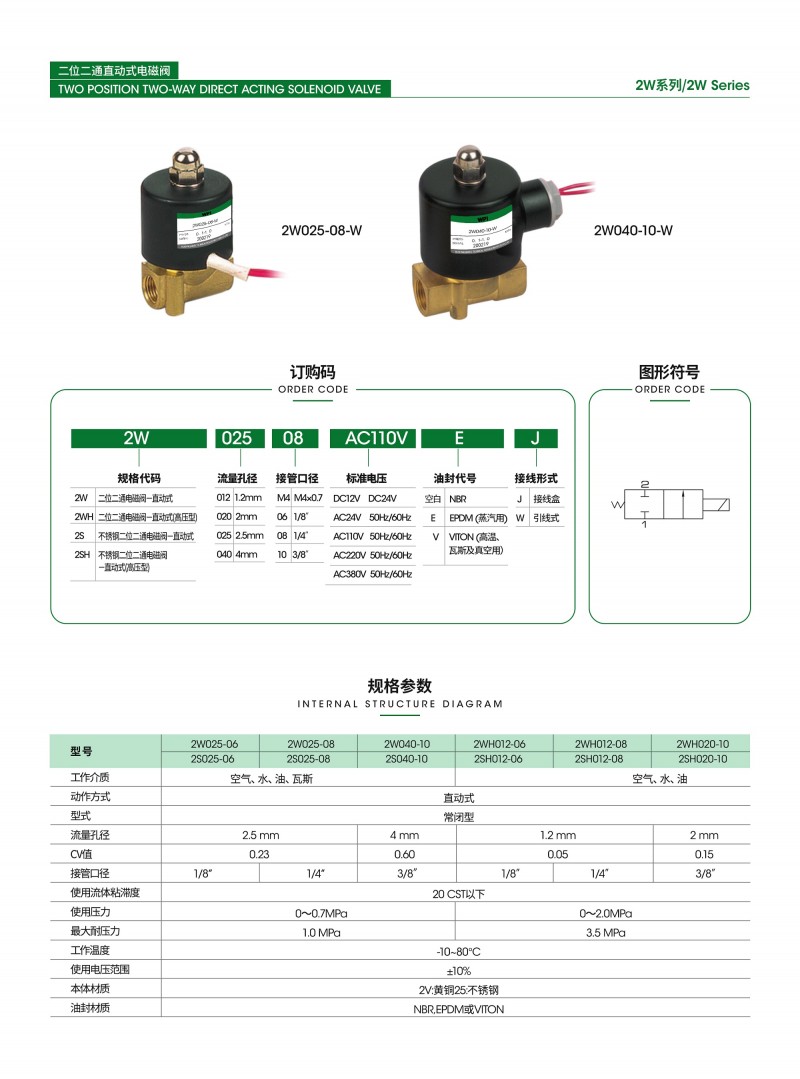 WPI 二位二通直动式电磁阀2W系列